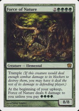 あなたが支払わない限り、あなたのアップキープの開始時に、Force of Natureはあなたに8ダメージを与える。