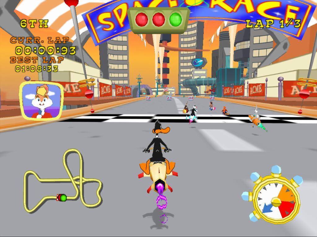 銀河をまたぐこのクレイジーで、手放しのない勝者総取りのコンテストで、強力なパワーを誇るスペース レーサーに乗って出発しましょう!法外ないたずら、ギャグ、そして陽気な ACME デバイスが満載の、これは宇宙のこちら側で最もクレイジーなレースです。