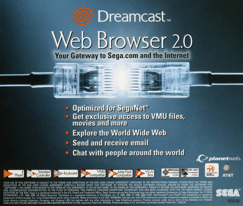 Sega.com とインターネットへのゲートウェイ-SegaNet用に最適化-VMU ファイル、ムービーなどに独占的にアクセスできます-ワールドワイドウェブを探索する-メールの送受信- 世界中の人々とチャット